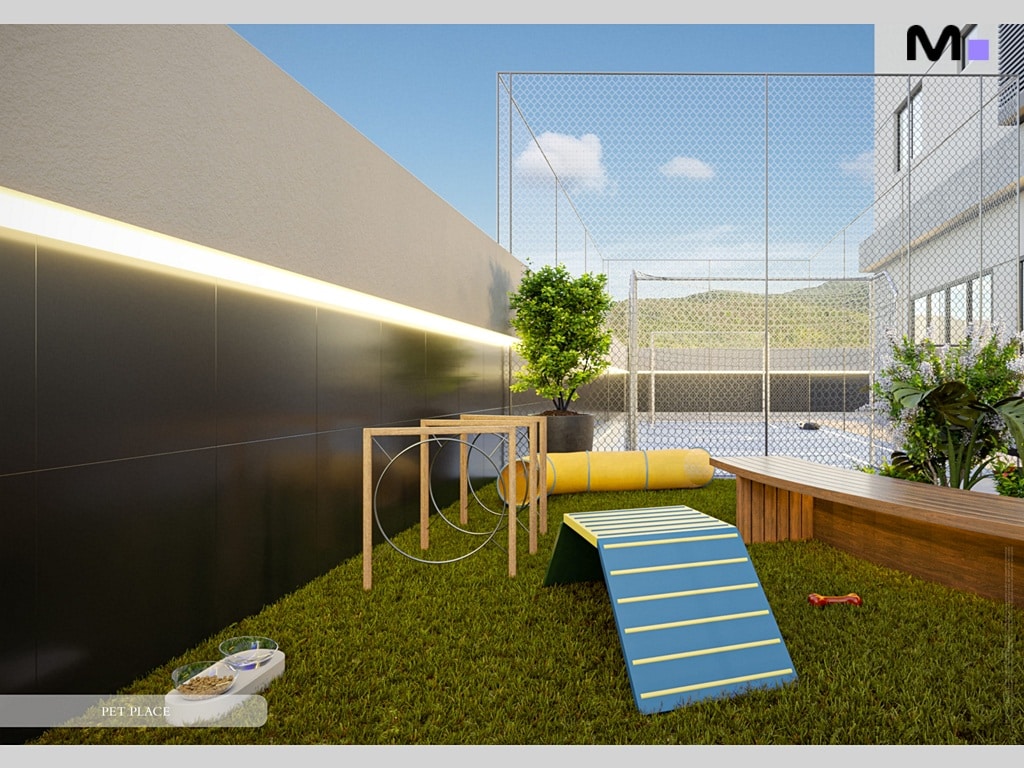 O empreendimento também prioriza segurança e sustentabilidade, oferecendo infraestrutura para câmeras de monitoramento, porteiro eletrônico, portões automatizados e sistema de reaproveitamento de água da chuva.